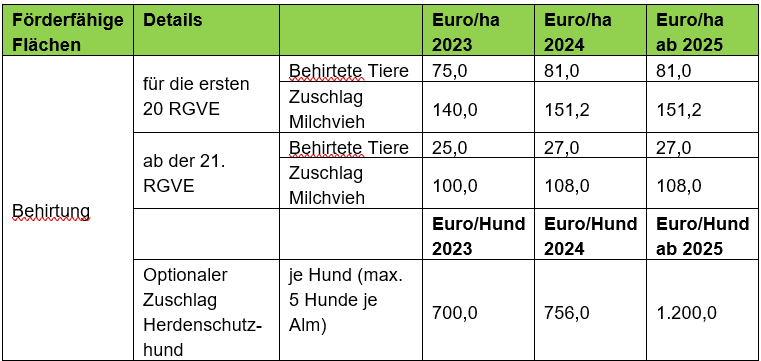 - Die Unterstützung wird für die Behirtung von Raufutterverzehrern auf Almweideflächen gewährt.
